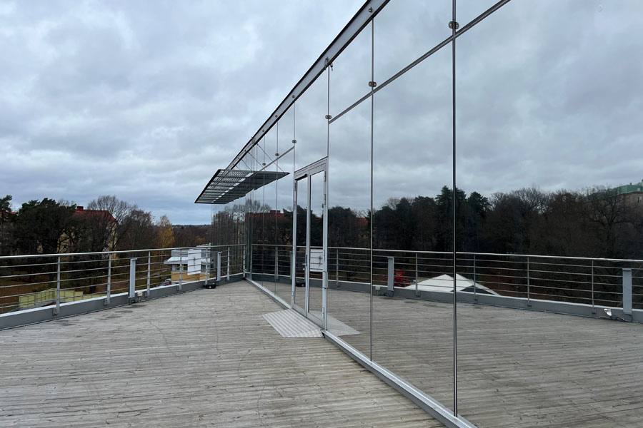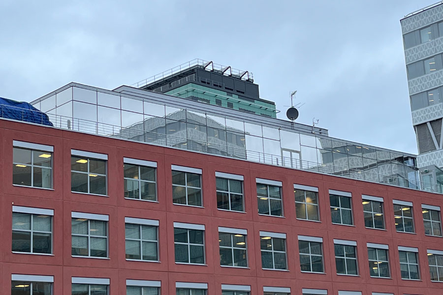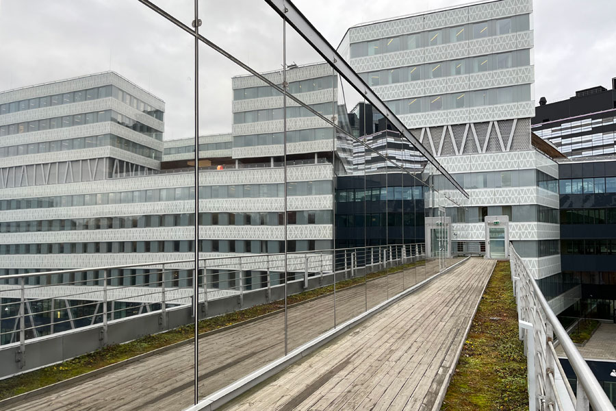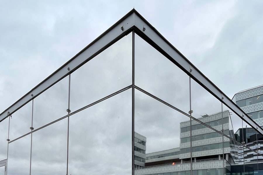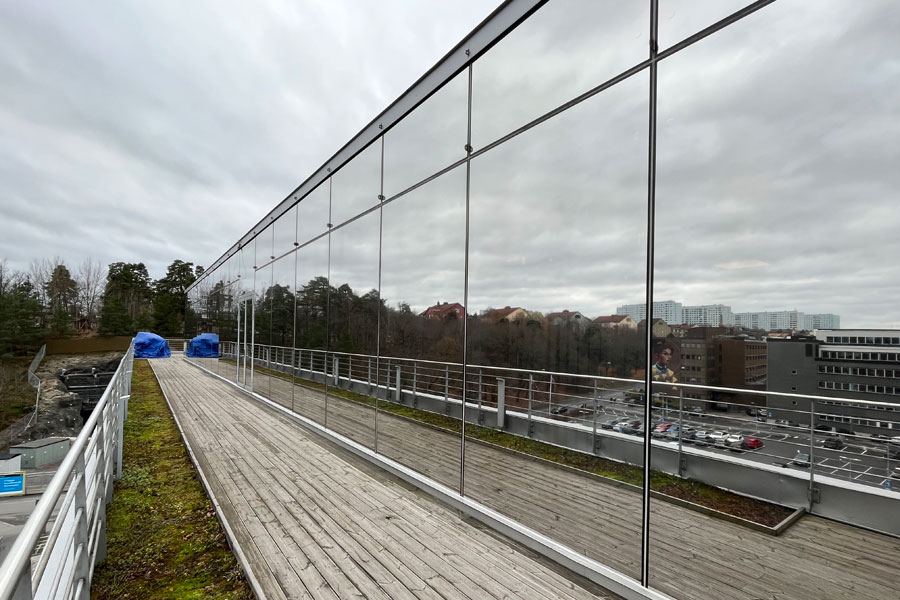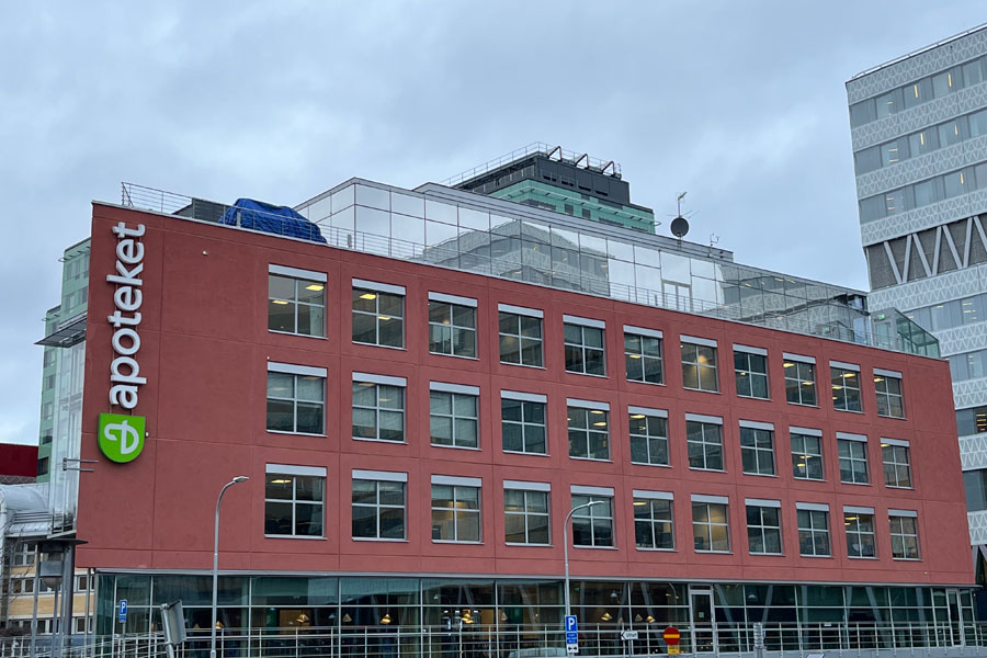Solfilm til Apotekets hovedkontor i Solna. Montering af solfilm Clarity 15 EXT mod varme og blænding på 54 tagglas. Solfilm Clarity 15 EXT er yderst effektiv mod varme og reducerer op til 90 % af solens strålevarme.