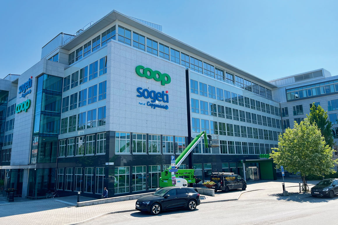Solfilm Clarity 60 EXT mod varme til et førende ejendomsfirma i Stockholm. Projektet omfattede 152 glas på øverste etage, hvor vi brugte en skylift for at komme op i den høje højde. Solfilm giver effektiv beskyttelse mod varme og skaber et pænere indemiljø.