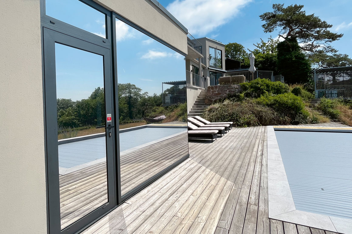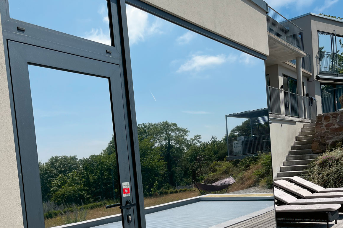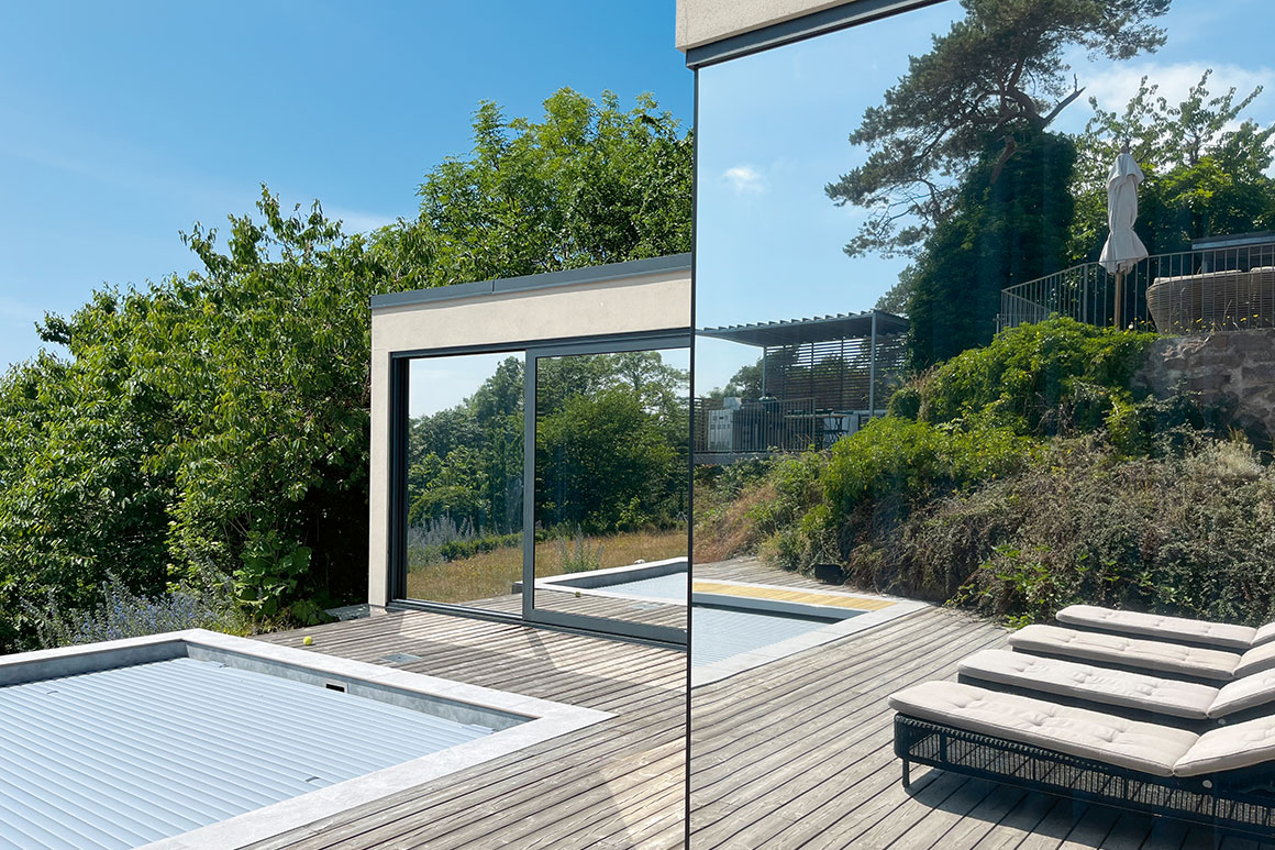På denne eksklusive villa installerede vi solfilm Clarity 15 EXT, 30 EXT og 60 EXT på 29 glas. Solfilmen vil ikke kun beskytte mod varme og skadelige UV-stråler, den vil også tilføje et strejf af elegance til villaens moderne design, mens udsigten forbliver lige så imponerende – en harmonisk forening af funktion og skønhed.