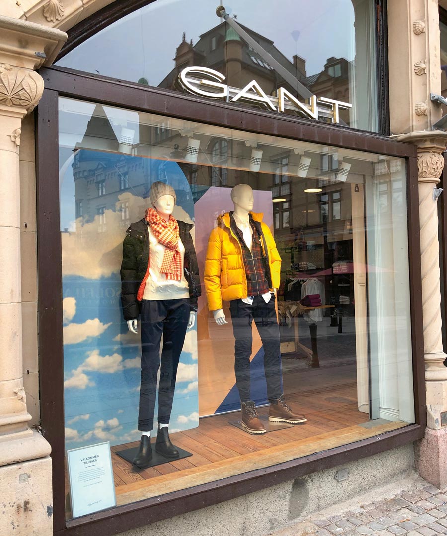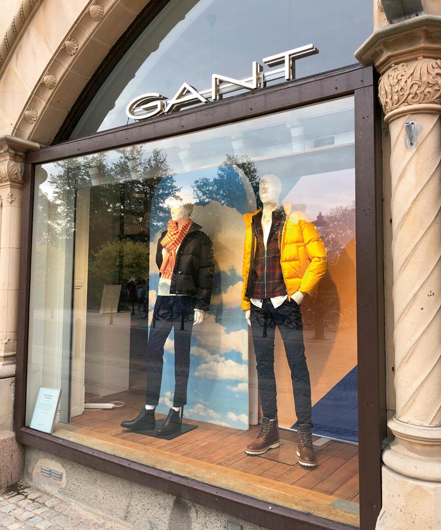 Solar control film Spectra 22 XC on 4 glasses against fading of clothes in the store. We have also installed solar control film Chrome 285 XC to Gant in Gothenburg.