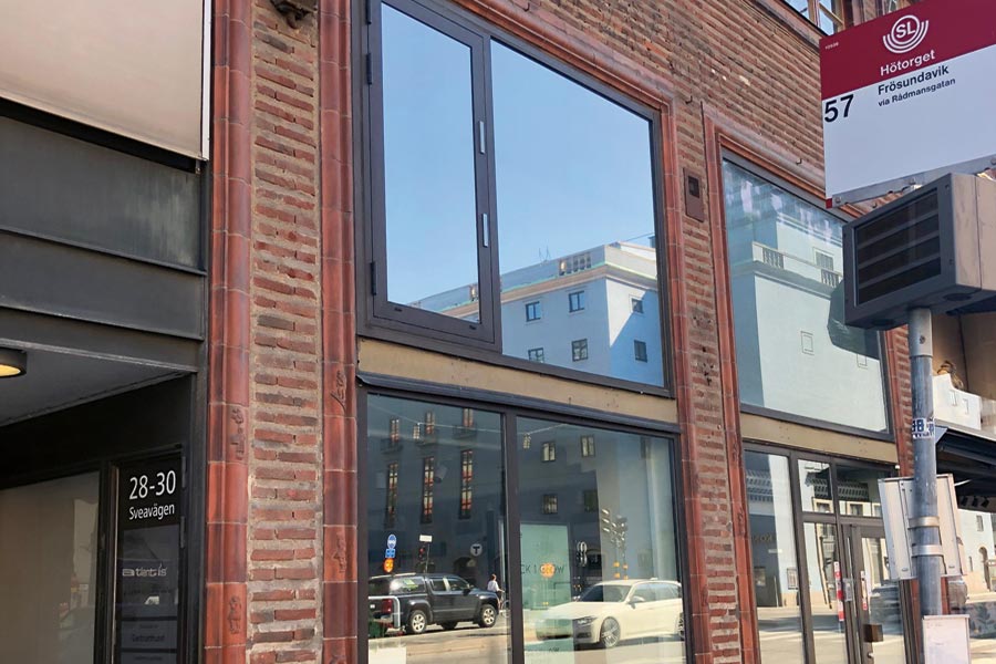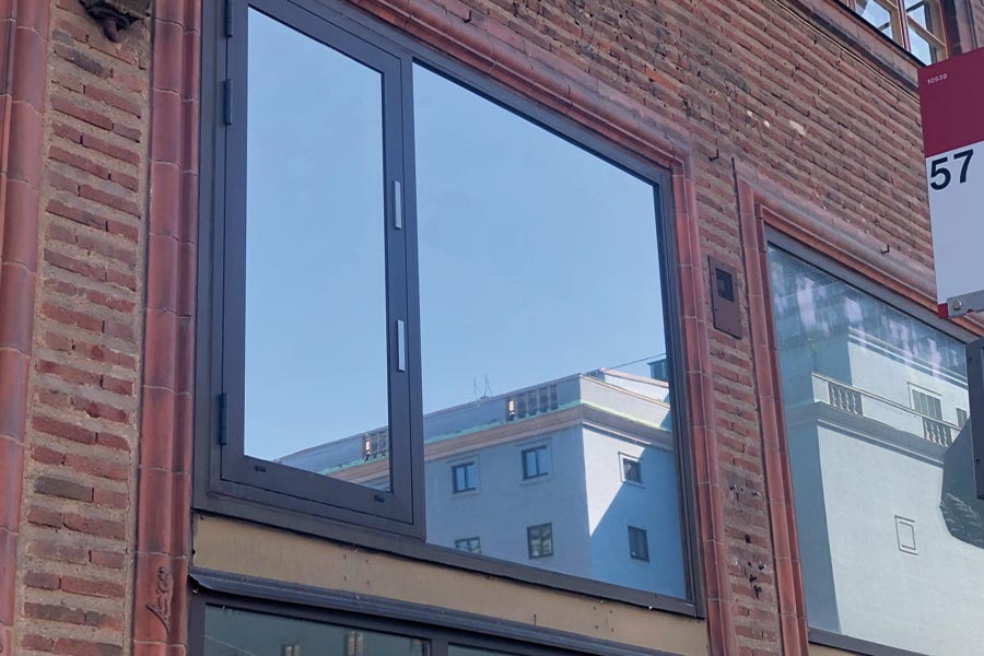Solar control film Chrome 285 XC against heat on 2 glasses and frosted decorative film Mat White against transparency on 2 glasses.