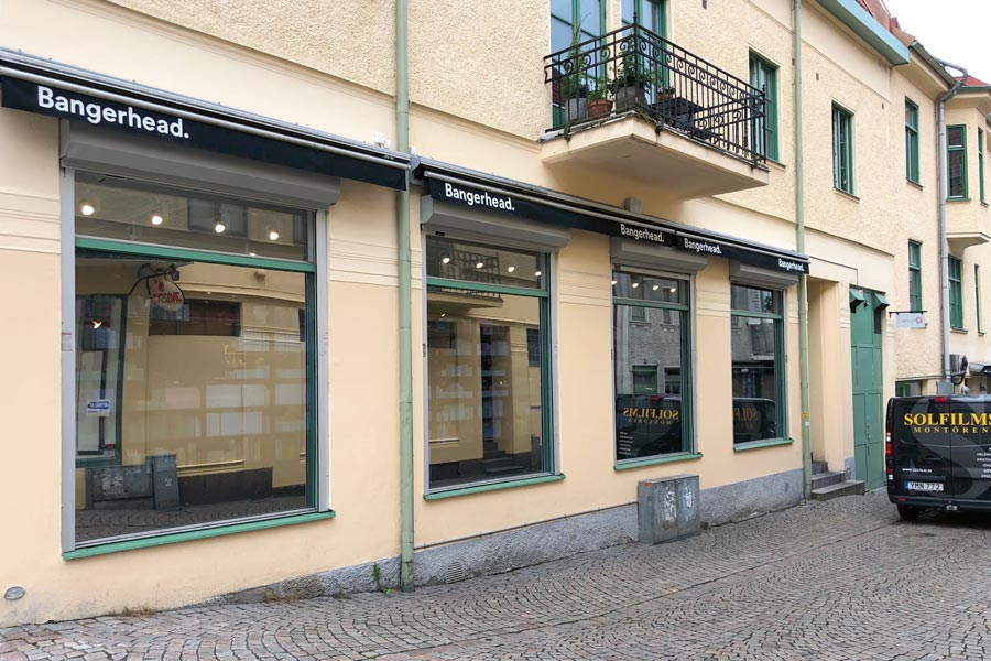 Solfilm Chrome 270 XC på 4 butikkvinduer. Kunden ønsket solfilm for å senke varmen i butikken fordi alle varene inne i vinduet ble skadet av UV-lyset og varmen.