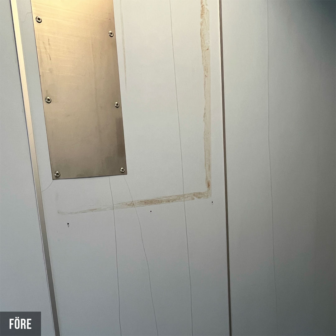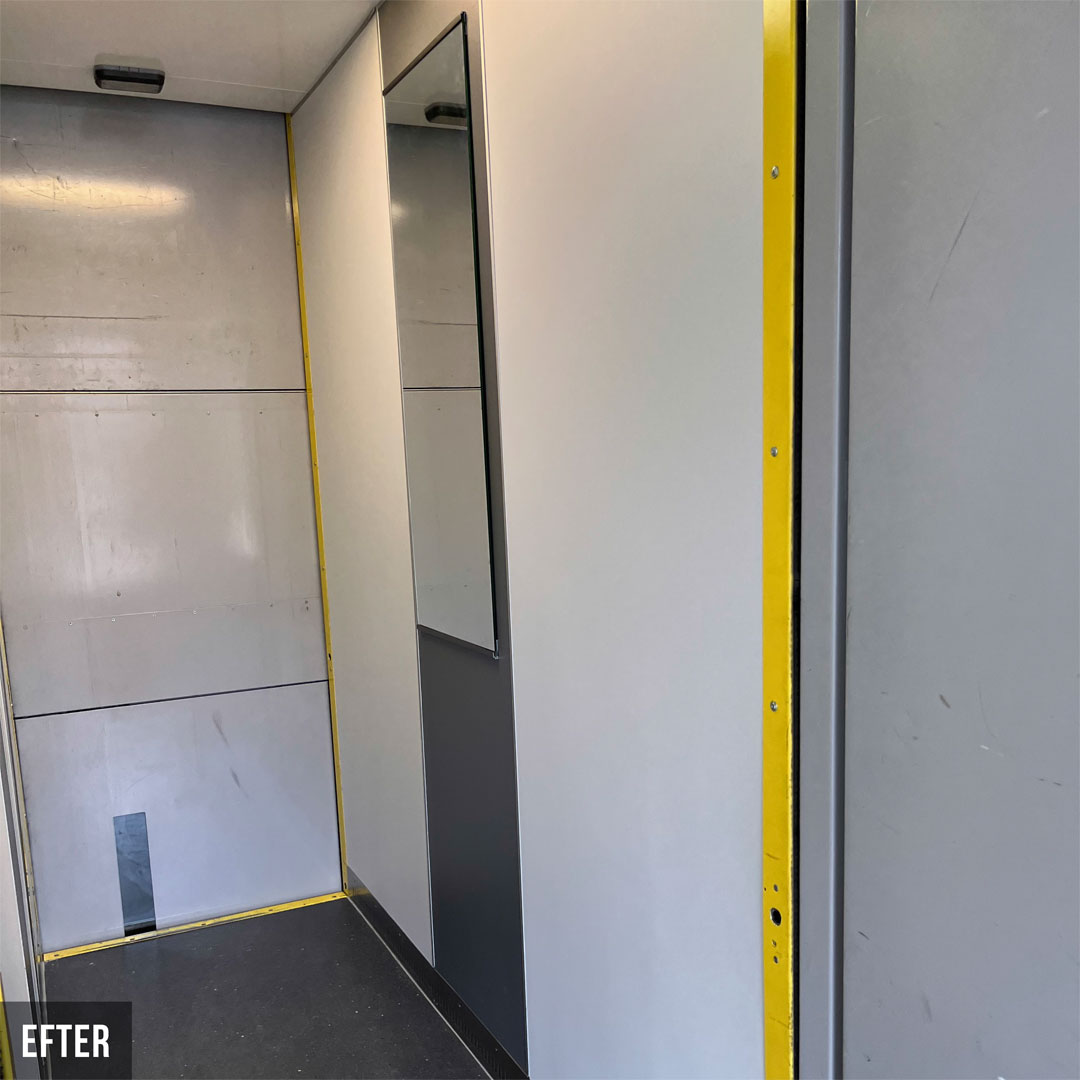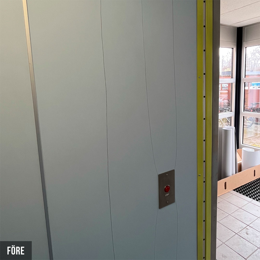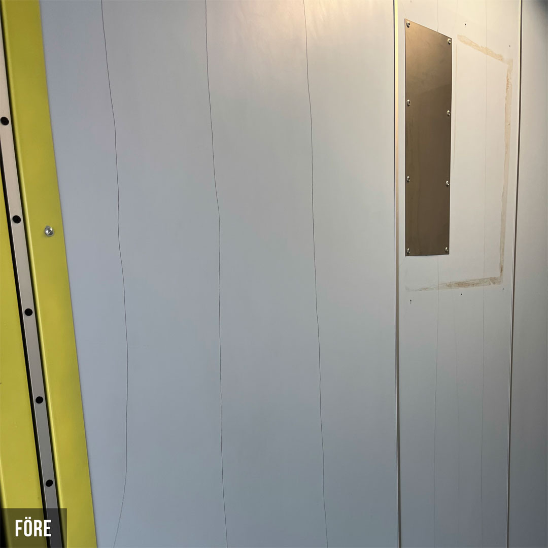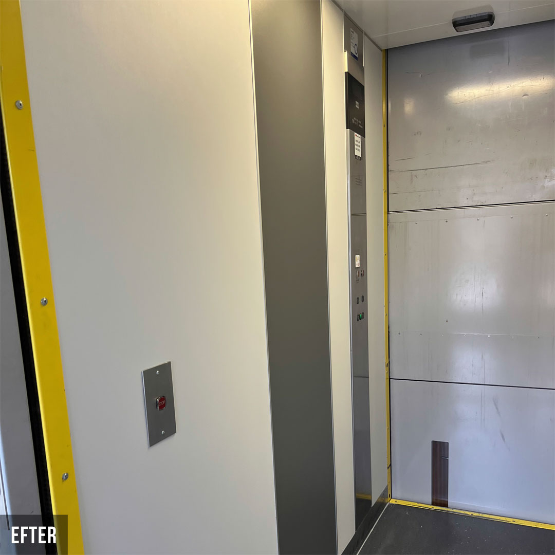 Renovering i 18 heiser for borettslag i Karlstad. De nye heisene er nå tofarget og veggene er dekket med innvendig folie Grey Velvet K5 og Grey K6. Renoveringen har hevet standarden i heisene og skapt et attraktivt miljø for både beboere og besøkende.