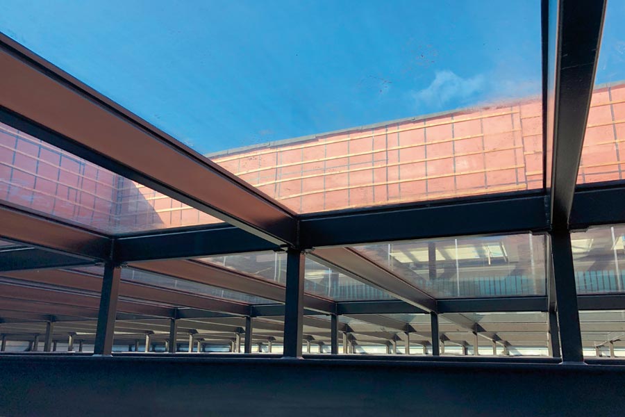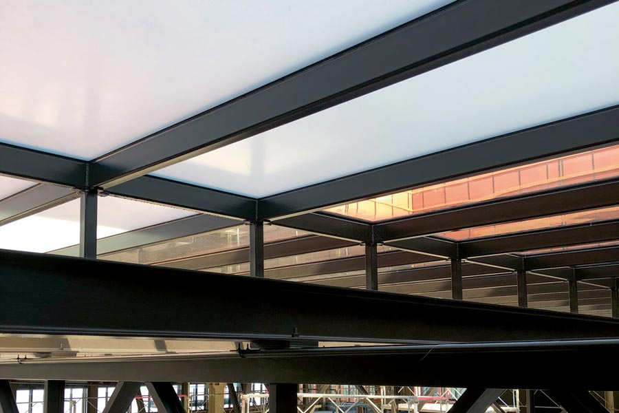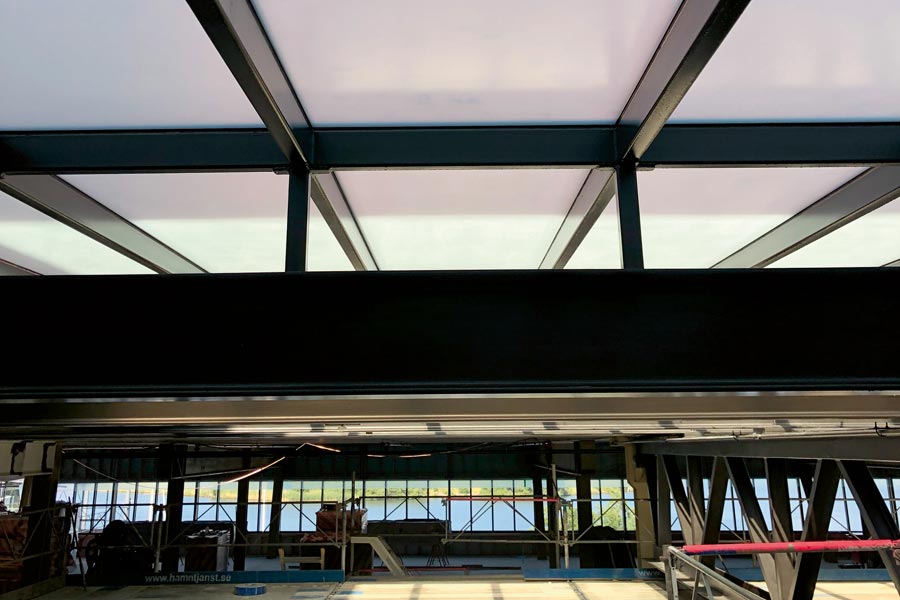 Frostet dekorativ film Mat White på 95 store takglass for Geely Design (Volvo) i Göteborg.