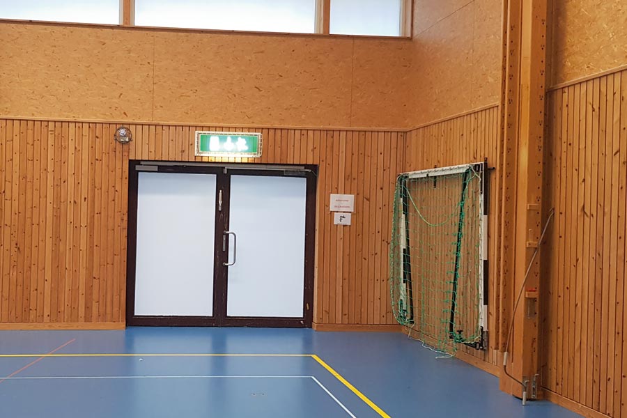 Högastensskolans idrettshall i Helsingborg hadde et problem med at solen blendet. Her ble det montert hvit folie på 25 glass.