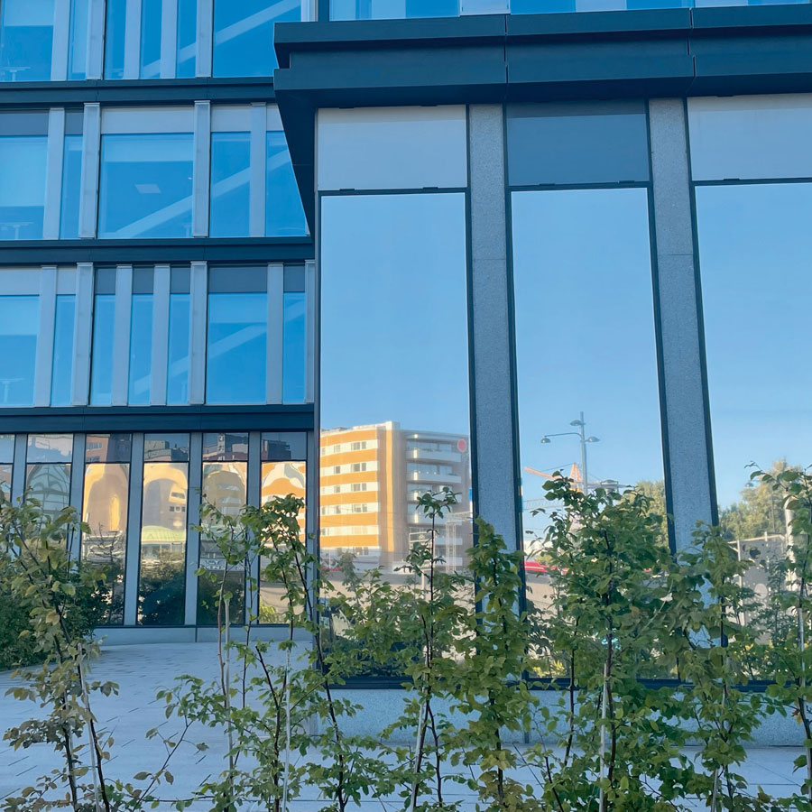Solfilm Clarity 15 EXT mot varme og gjennomsiktighet. Prosjektet inkluderte 23 glass.