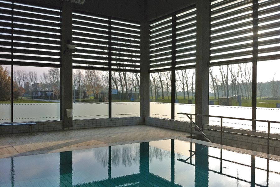 Ved flere anledninger etter ombyggingen av Lerbergets Sporthall har vi montert ulike typer dekorative filmer. Designet og deler av den frostede dekorative filmen ble utviklet sammen med arkitekten for prosjektet.
