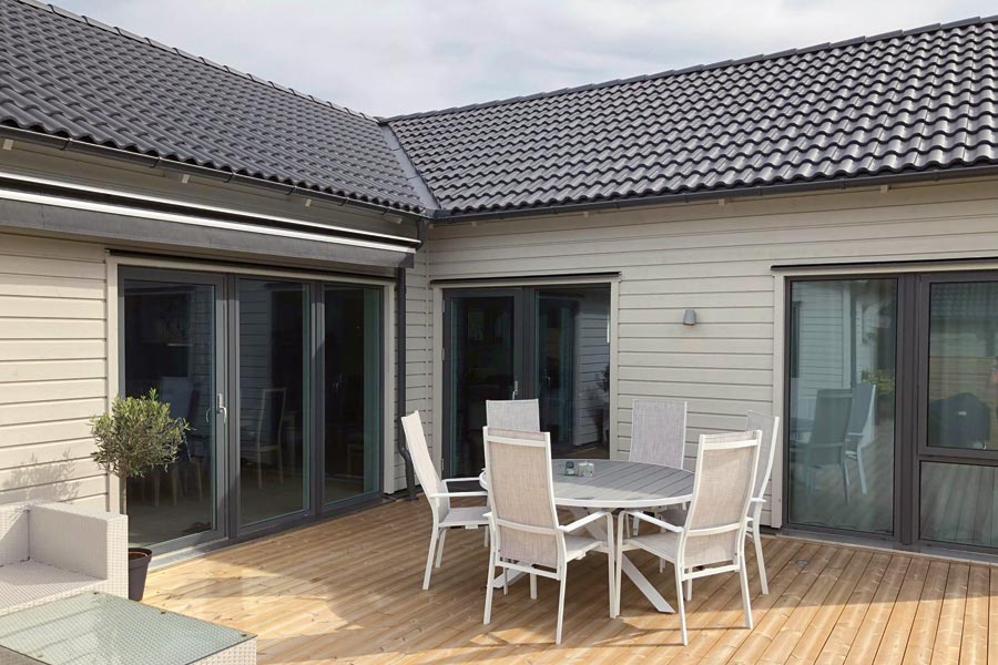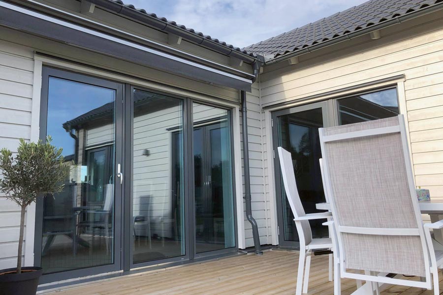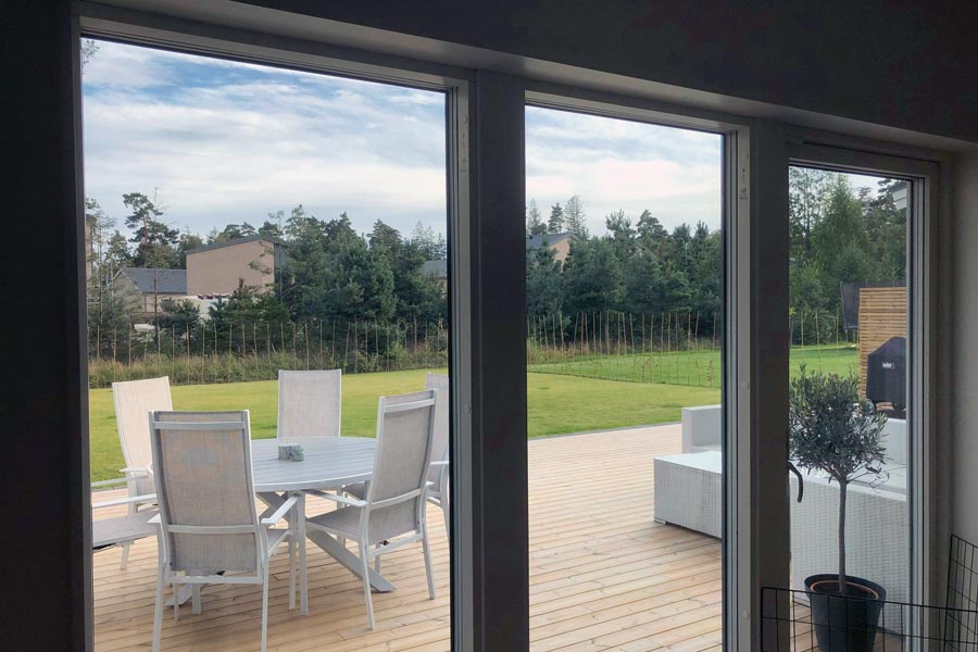 Solfilm Spectra 333 XC montert på 9 store glass for å beskytte mot varme og falming innendørs.