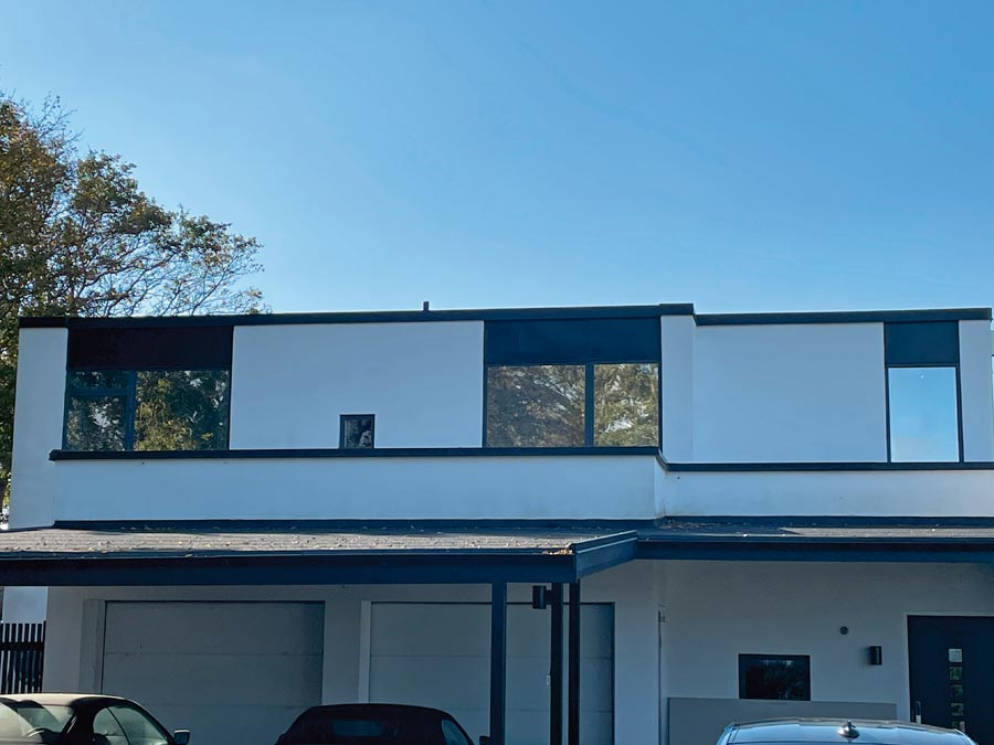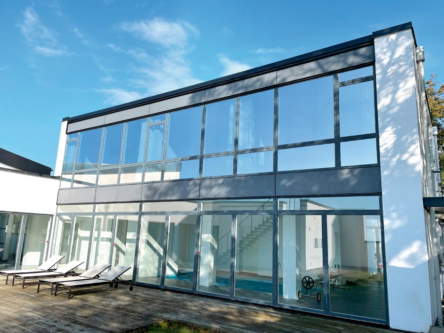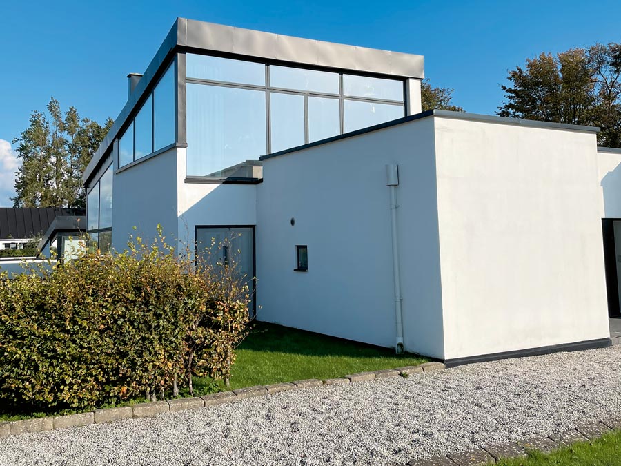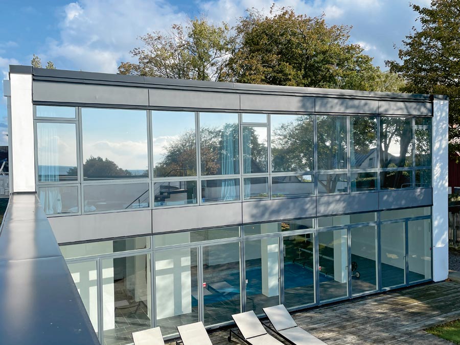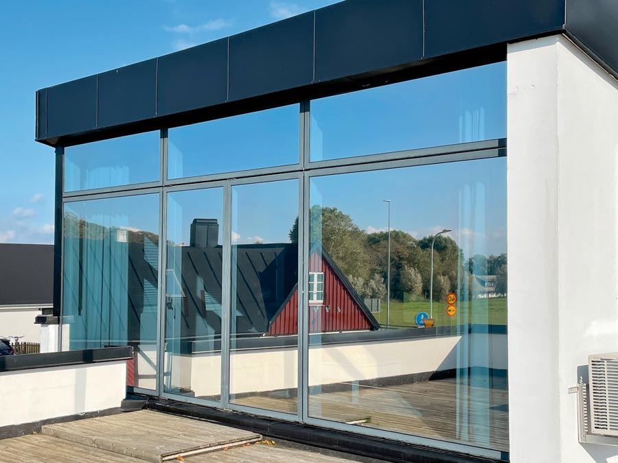 Solfilm Chrome 270 XC for privat luksusvilla i Bjärred. Chrome 270 XC er en reflekterende solbeskyttelsesfilm med høy varmeavvisning og litt mindre lysgjennomgang.