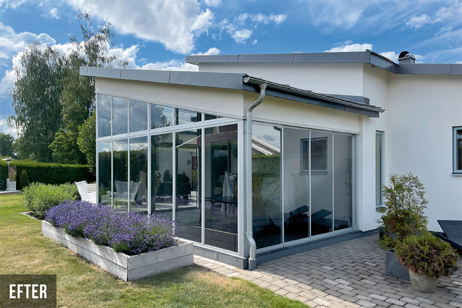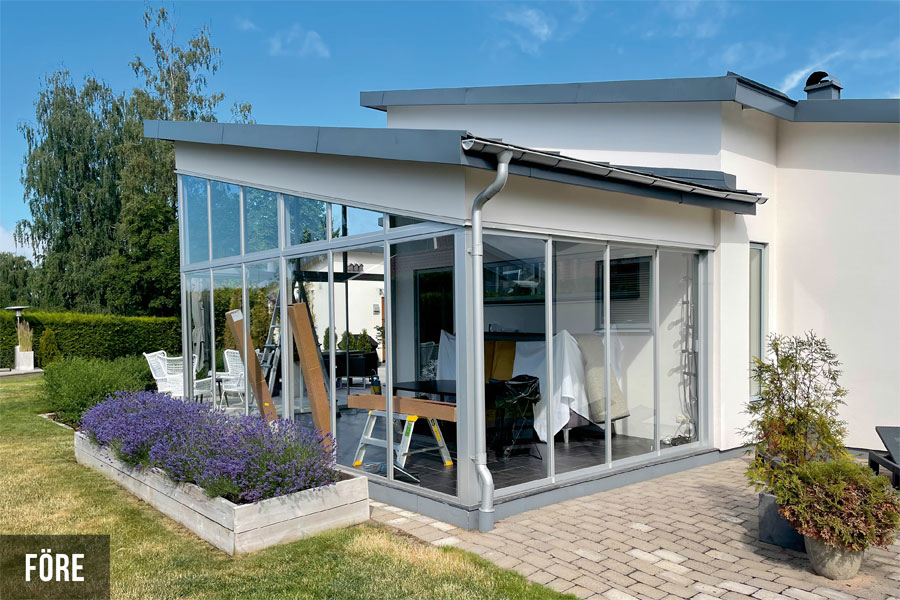 Innvendig solfilm Steel 30 INT mot varme og falming på 24 glass. Før og etter bilder.