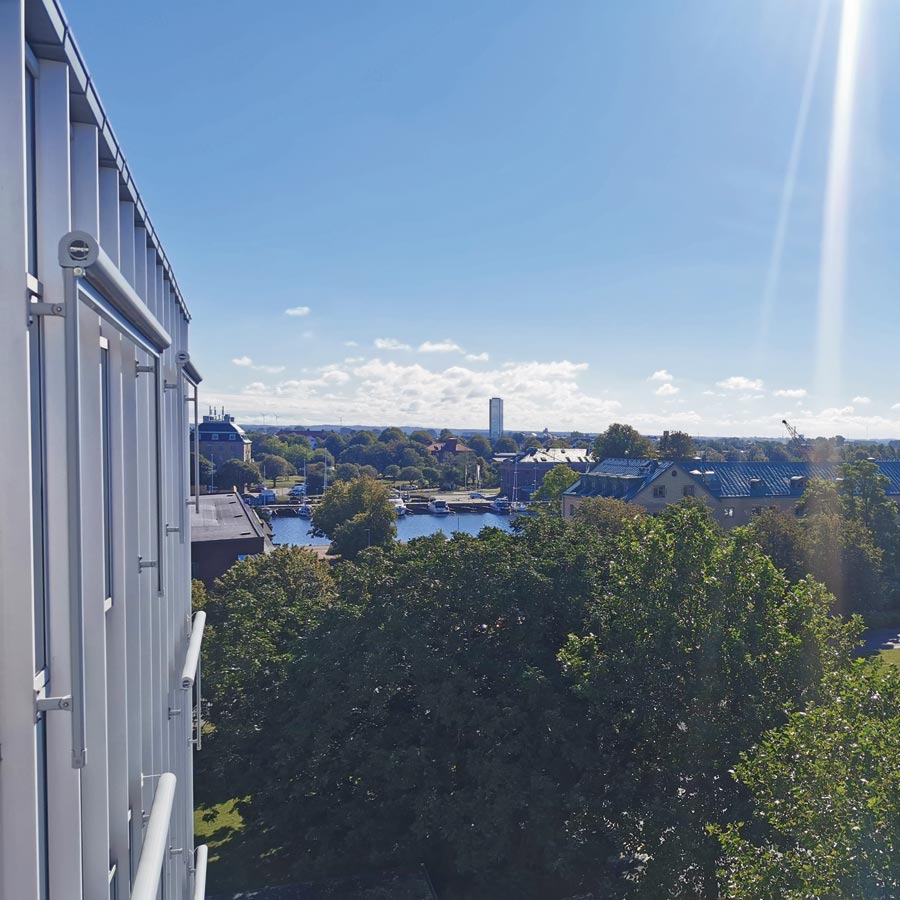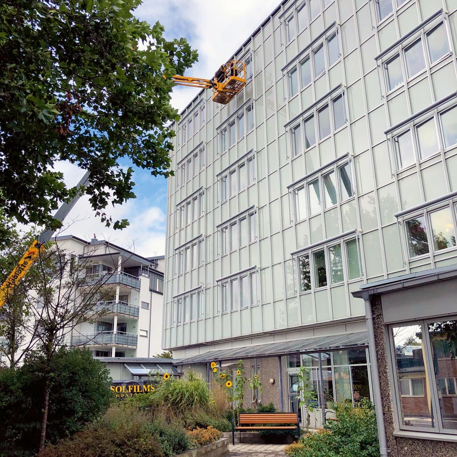 Nok et stort prosjekt på Slottsparkens eldreboliger i Halmstad. Solfilm Chrome 270 XC på 135 glass og Chrome 285 XC på takpyramider.