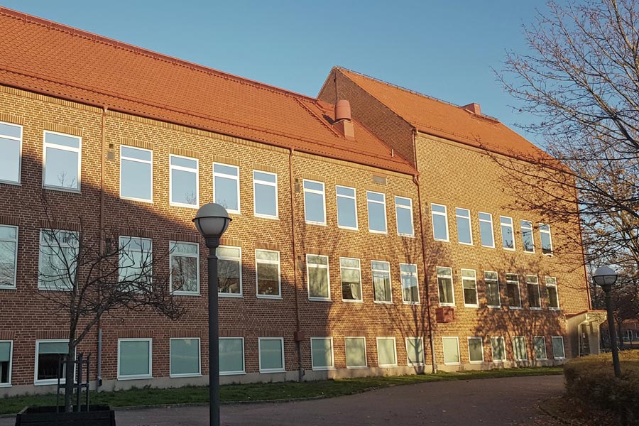 På Sturegymnasiet i Halmstad har vi montert solfilm Chrome 285 XC på 32 glass for å redusere varmen innendørs.