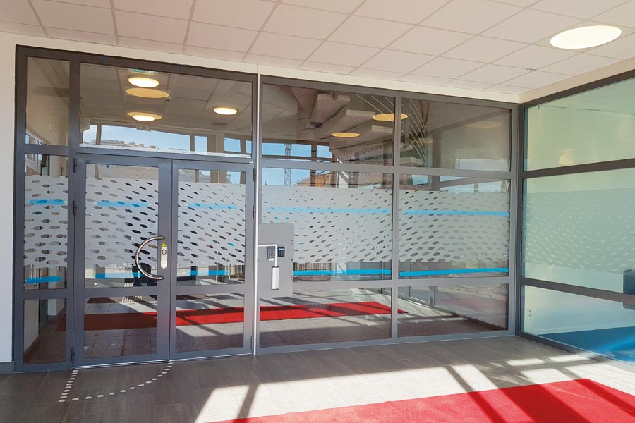 Vi har også montert frostet dekorativ film i Trafikverkets mønster for Trafikverket i Helsingborg.