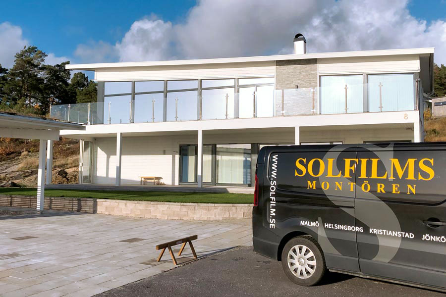 Solskyddsfilm på privat villa i Svanesund – 10 glas med solskyddsfilmen Chrome 270 XC för att skydda mot värme och blekning inomhus.