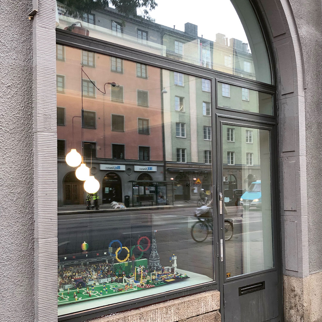 Solskyddsfilm Prisma 70 EXT mot värme och blekning på skyltfönster. Filmen reducerar värmen från solen och bidrar till ett jämnare inomhusklimat samtidigt som ljusinsläppet behålls. Detta är en utvändig solskyddsfilm som ger ett exklusivt utseende med en svagt grönblå toning som passar bra för större glaspartier i stadsmiljö.
