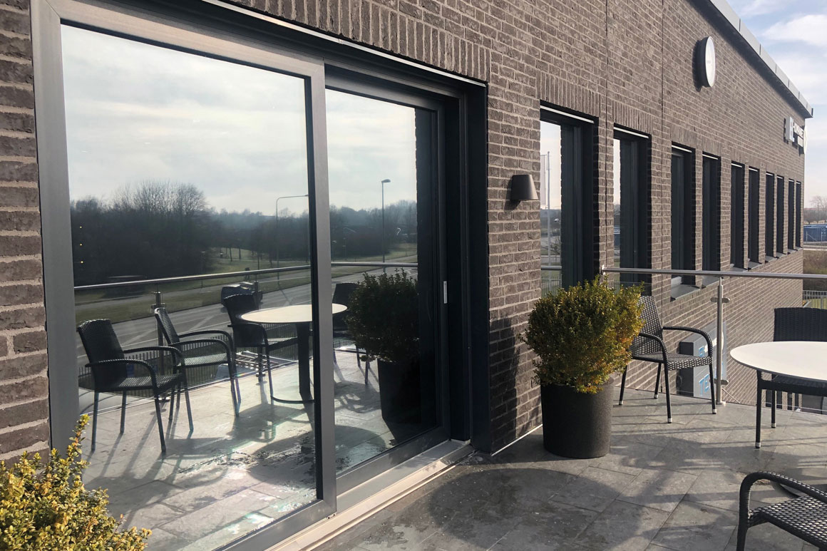 Här förstärkte vi de redan tonade solskyddsglasen med Clarity 60 EXT. Solskyddsfilmen reducerar upp till 57% av solens instrålningsvärme, vilket skapar en skönare inomhusmiljö samtidigt som energikostnaden minskar. Dessutom ger det ett stilrent och snyggt utseende på fastigheten. Projektet omfattade 36 glas.